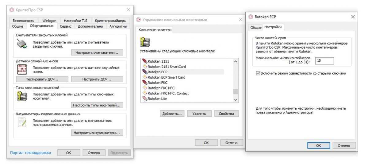 В таблице указаны носители, продемонстрировавшие работоспособность с соответствующими версиями КриптоПро CSP.