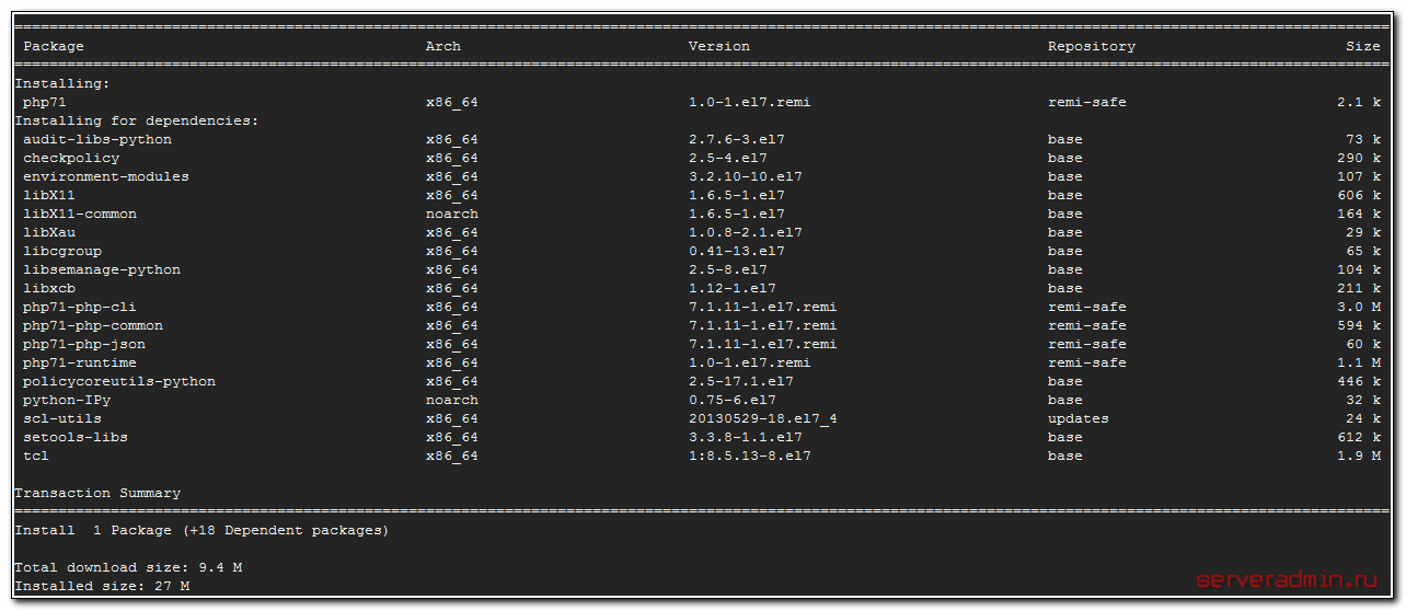 Вторая проблема в том, что надо определить, какой репозиторий использовать для установки php7. Их существует очень много. К примеру, мой хороший знакомый в своей статье по настройке web сервера использует репозиторий Webtatic. В принципе, чтобы просто поставить php 7-й версии это нормальный вариант. Но если вы после этого захотите установить phpmyadmin через yum уже ничего не получится. Будет ошибка зависимостей, которые нужно будет как-то руками разбирать.