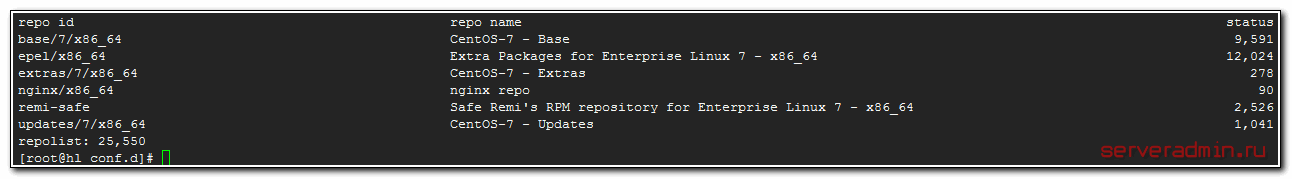После этого повторяем установку remi, все должно пройти нормально. Проверим список подключенных репозиториев.