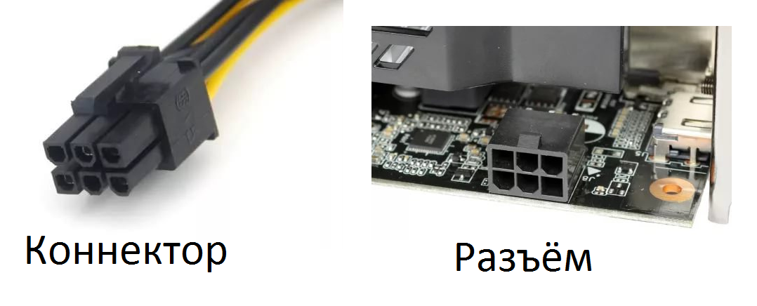 Видеокарта запитывается от 4-пинового коннектора. Место для питания, в зависимости от модели видеокарты, может быть где-то сбоку, но чаще всего оно находится сзади. Если видеокарта очень мощная и требовательная к питанию, то она может запитываться и от 6-пинового коннектора
