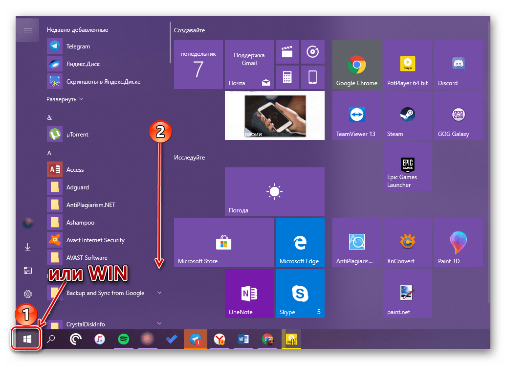 - Откройте «Пуск» и начните листать вниз список представленных в нем элементов.