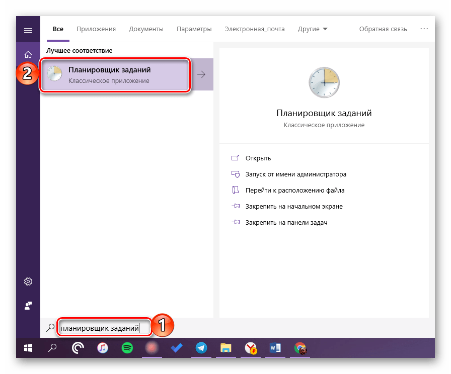 Интегрированную в ОС Windows 10 функцию поиска можно использовать не только по ее прямому назначению, но и для запуска различных программ, в том числе и стандартных, коим является «Планировщик заданий».