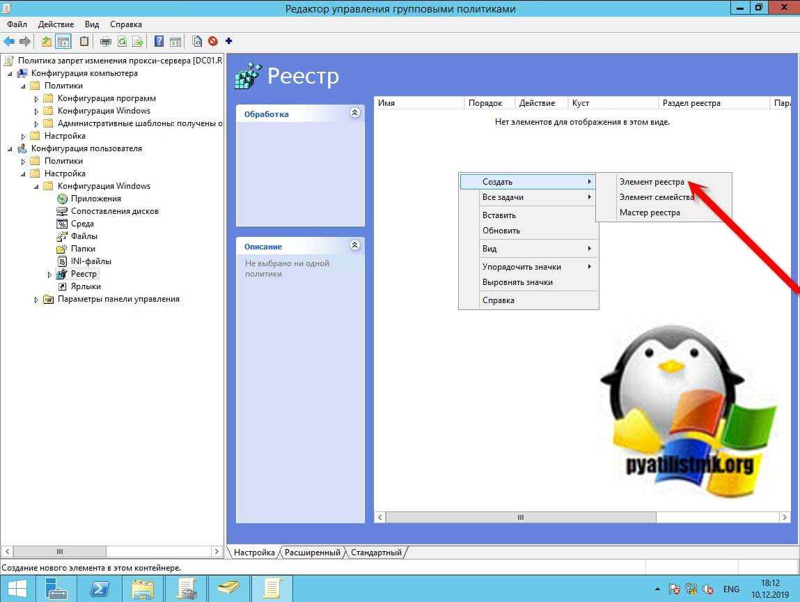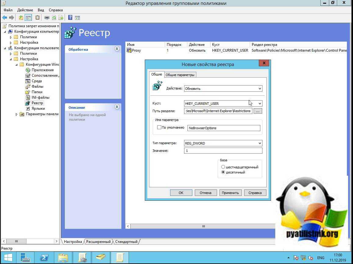 Конфигурация пользователя — Настройки Конфигурация Windows — Реестр (User Configuration — Preferences — Windows Settings — Registry)