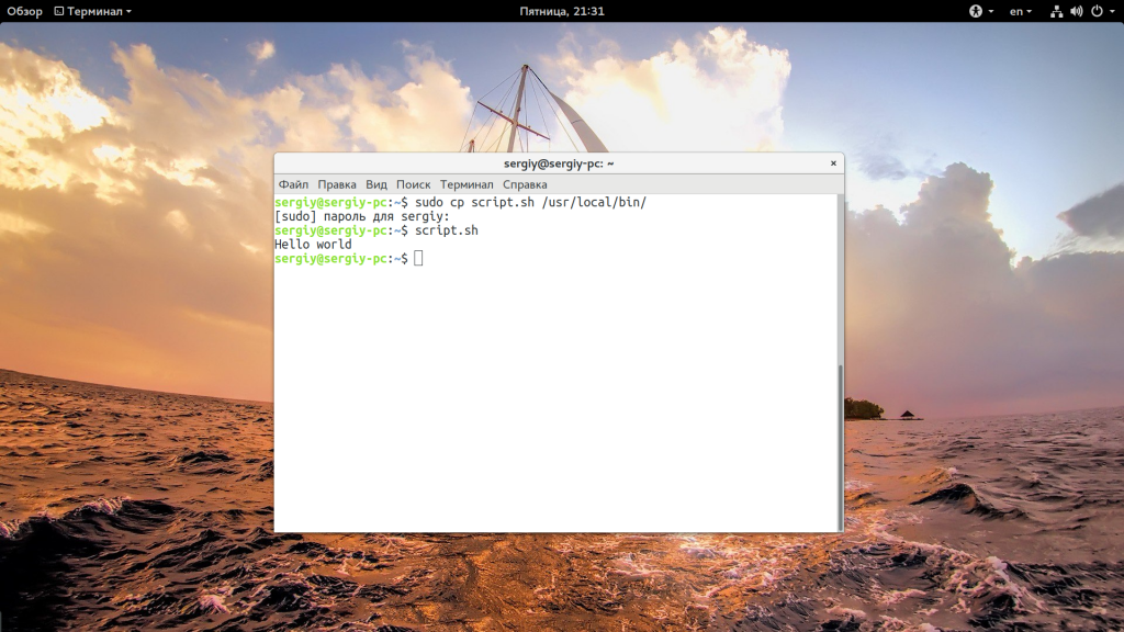 Это был первый способ вызвать скрипт, но есть еще один — мы можем запустить оболочку и сразу же передать ей скрипт, который нужно выполнить. Вы могли редко видеть такой способ с bash, но он довольно часто используется для скриптов php или python. Запустим так наш скрипт: