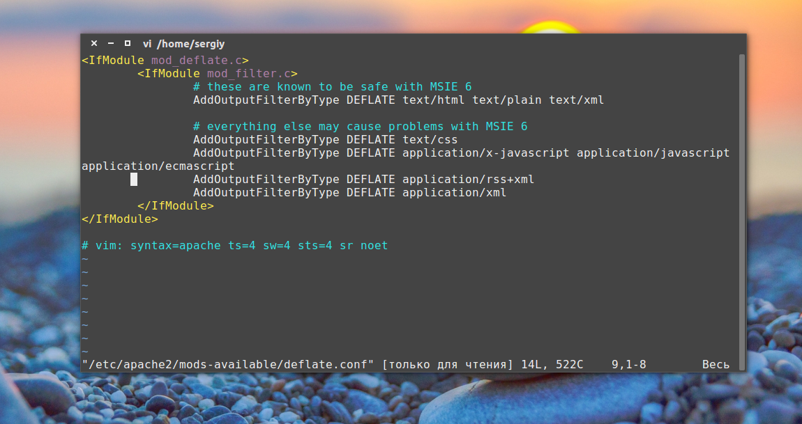 Для начала откройте конфигурационный файл Apache вашим любимым текстовым редактором.
