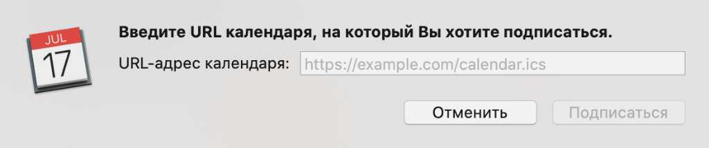 Пользователю, получившему ссылку на открытый календарь останется лишь нажать кнопку Подписаться, вписать желаемое название для календаря и нажать Добавить.
