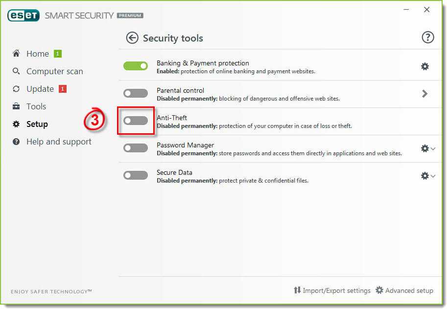 - Кроме того, некоторым пользователям может потребоваться отключить настройку ESET Anti-Theft с помощью программного обеспечения ESET. Для этого откройте ESET Smart Security в Windows.