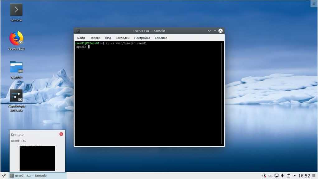 Запуск оболочки bash из оболочки zsh для пользователя user01: