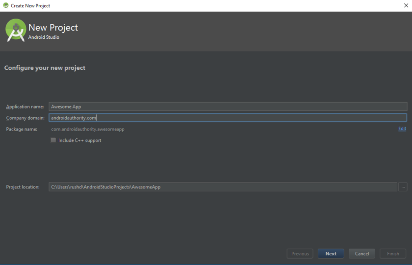 Выберите вариант, который лучше всего подходит для приложения, которое вы собираетесь создать, и это повлияет на тип файлов, которые вам будут представлены при первом запуске. На этом этапе вы также сможете выбрать имя своего приложения, минимальный Android SDK, который вы хотите поддерживать, и имя пакета. Имя пакета – это окончательное имя файла, которое будет иметь приложение, когда вы загрузите его в Play Store, – сочетание имени приложения и имени разработчика.