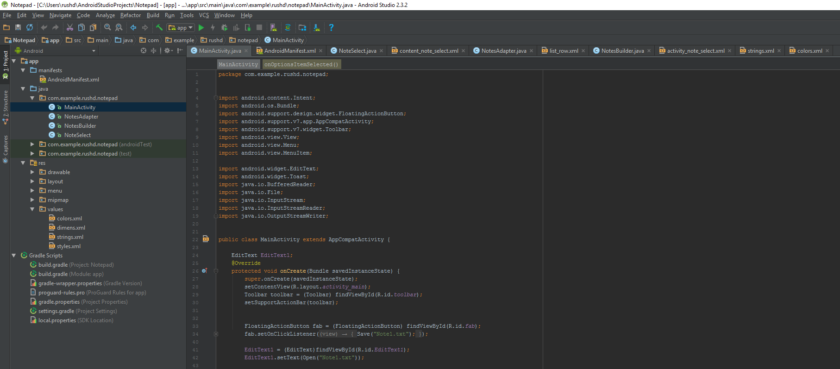 Основным «кодом» будет файл Java, имя которого совпадает с именем вашего действия. По умолчанию это MainActivity.Java, но вы, возможно, изменили его при первой настройке проекта. Здесь вы вводите свой сценарий Java и определяете поведение ваших приложений.