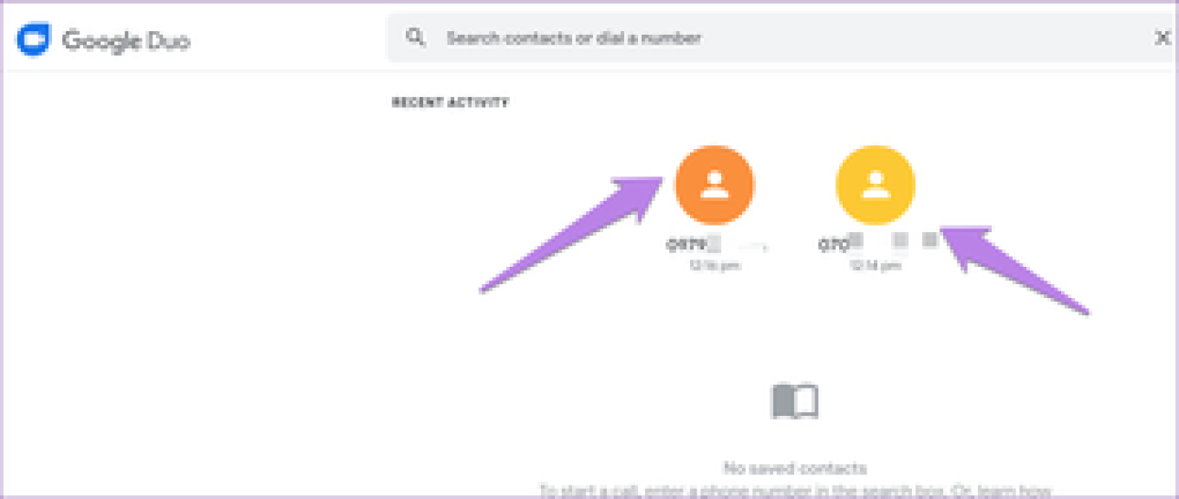 В веб-версии Google Duo вы найдете историю голоса и видео прямо на главной странице. Однако в нем перечислены только недавние звонки. Такие сведения, как голос, видео, исходящие или принятые вызовы, отсутствуют в истории.