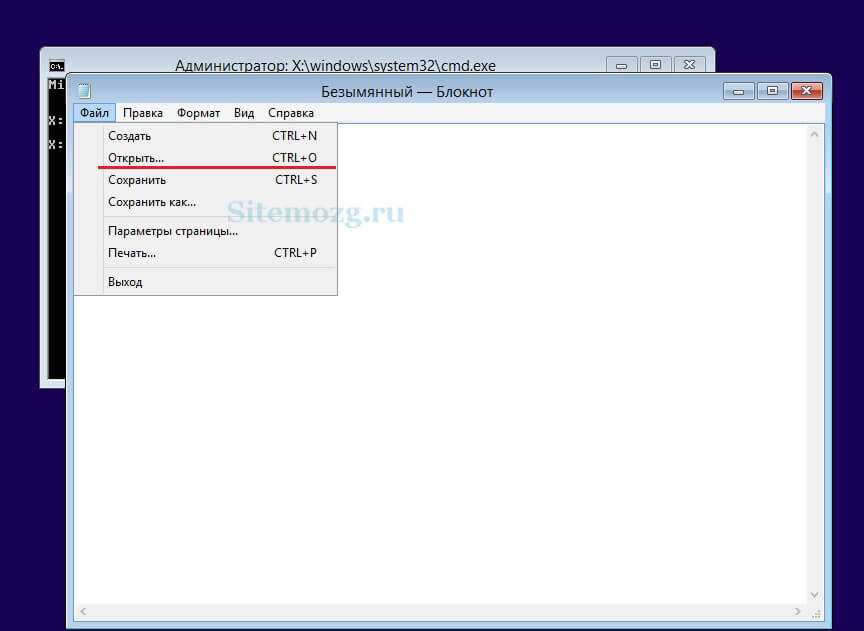 Откроется программа блокнот. В нём перейдите в Файл >> Открыть или нажмите CTRL+O.