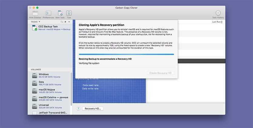 После создания бекапа не забываем подтвердить создание загрузочного диска с копией. Carbon Copy Cloner запишет немного дополнительных файлов и проведет нужные манипуляции.