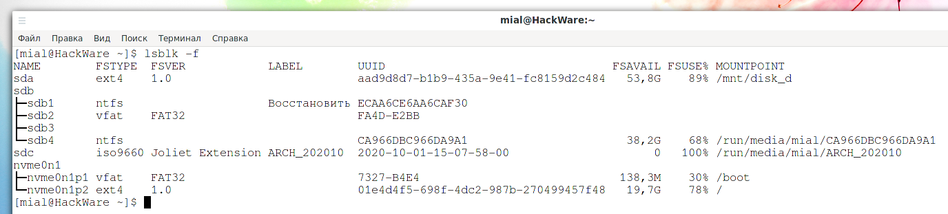Совет: Если вы хотите отобразить только UUID конкретного раздела, используйте команду .