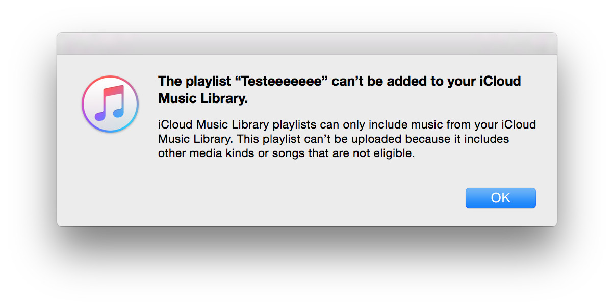 Я видел эту ошибку, когда добавлял песни прямо из вкладок «Для тебя» или «Новые» в iTunes в плейлист.