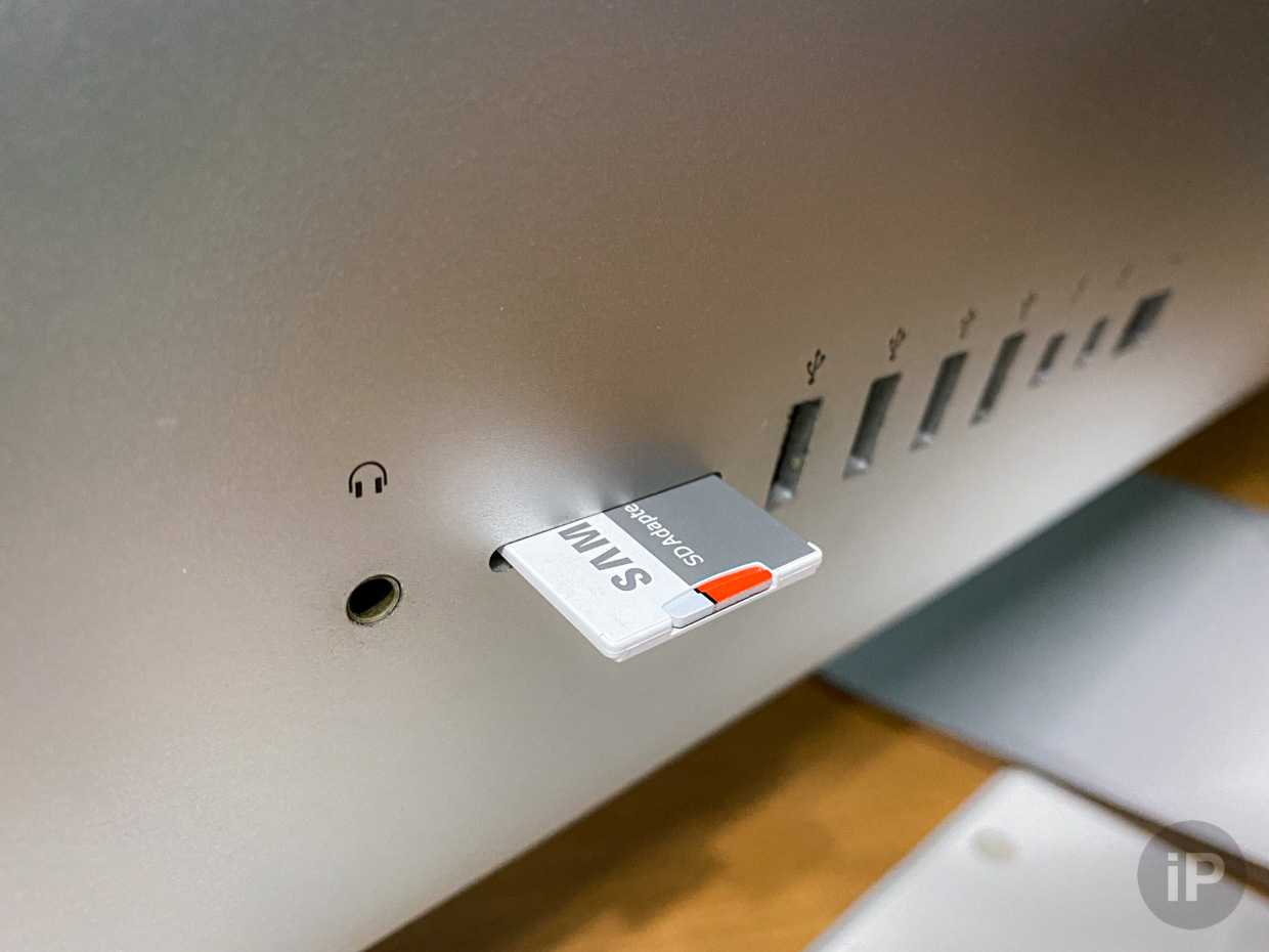 На втором фото слот для апгрейда RAM, который есть даже в последнем iMac 27″. Опасаюсь, что скоро и он исчезнет. А портом для SD воспользовался и в этот раз