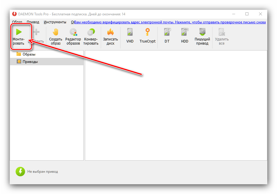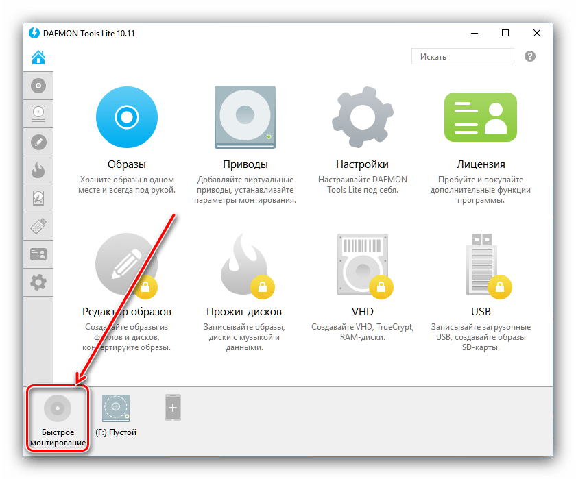 - Запустите Даймон Тулс Ультра, затем найдите и задействуйте опцию «Монтировать».