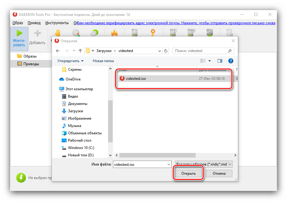 В окне монтирования первым делом нужно выбрать образ – воспользуйтесь кнопкой с тремя точками возле соответствующей строки.