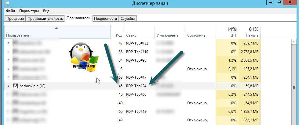 - Сеанс — номер сеанса формата rdp-tcp#24