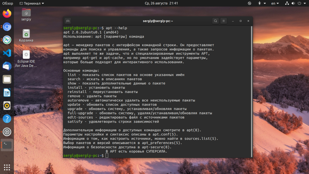 Я предпочитаю apt как более «свежую», но на самом деле практически во всех последующих примерах команд вы можете заменить «apt» на «apt-get» и не почувствуете никакой разницы.
