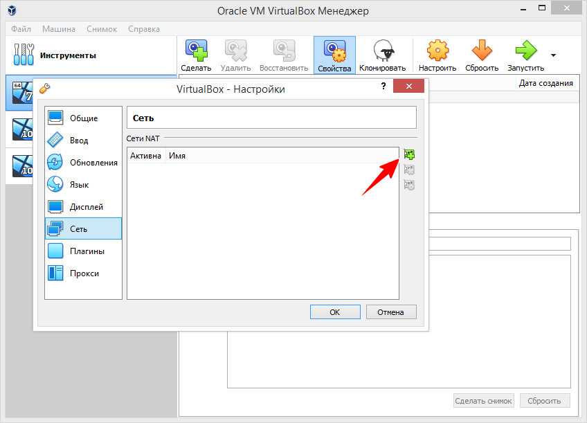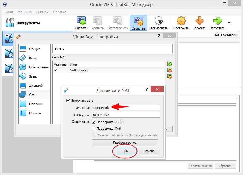 Здесь на вкладке «Сеть» тип подключения выбираем «Сеть NAT», а в выпадающем списке «Имя» выбираем только что созданную сеть.