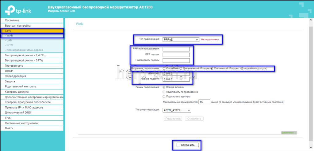 Для настройки PPPoE подключения на роутере с зеленым и бирюзовым веб-интерфейсом: