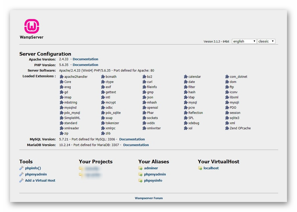 Следующий доступный веб-сервер называется WampServer. Он тоже популярен в определенных кругах пользователей. Его преимущество заключается в простоте установки и нетребовательности к системе, что позволяет нормально взаимодействовать с программой на любом компьютере. Присутствует поддержка всех необходимых компонентов, поэтому с настройкой и запуском локального сервера проблем не возникнет.