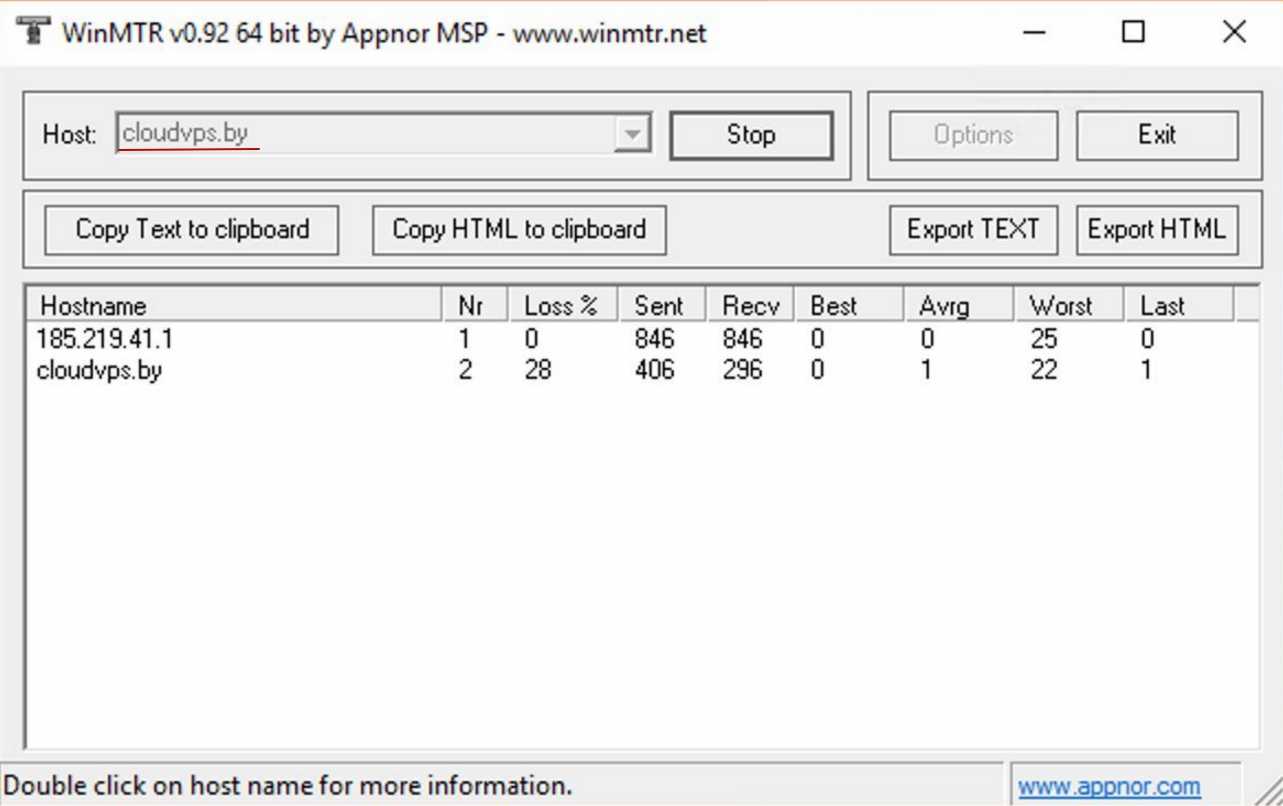 4. Дождитесь окончания выполнения запроса. В окне терминала вы увидите результат работы утилиты MTR: