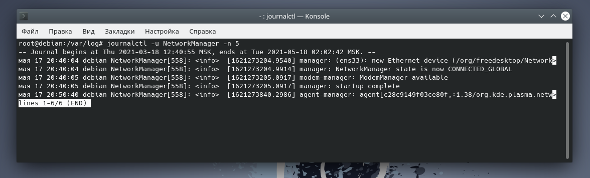 Также можно просмотреть информацию по выбранной службе, например, по NetworkManager:
