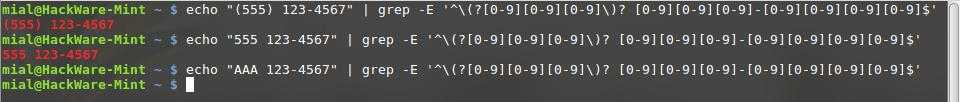 echo "5555 123-4567" | grep -E '^\(?{3}\)? {3}-{4}$'