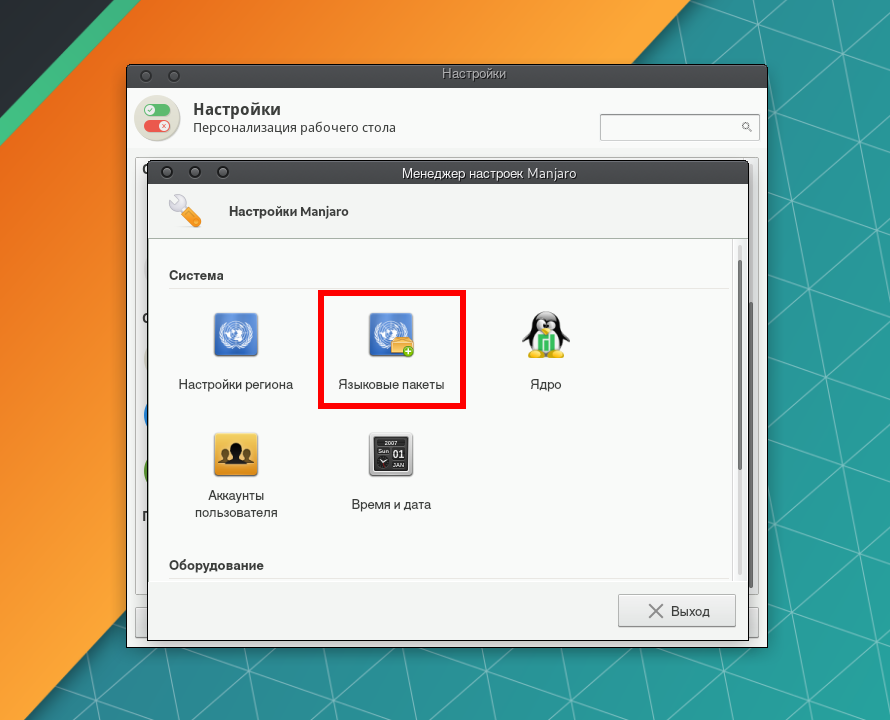 Для того, чтобы локализировать установленные приложения, в Manjaro Settings Manager перейдите в Языковые пакеты.