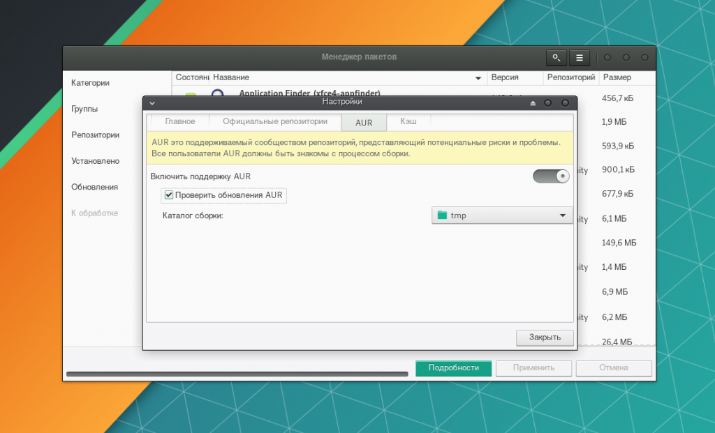 На вкладке AUR включите его поддержку соответствующим тумблером.