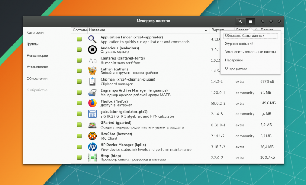 Подробнее об инсталляции ПО рассказано в статье «Установка программ в Manjaro».