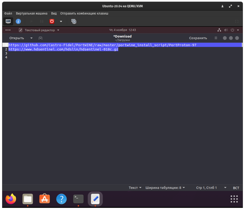 С одиночными файлами все понятно, вводим название утилиты – wget а адрес файла, но что делать, если необходимо скачать сразу несколько файлов? Тут опять нам поможет утилита Wget, и для этих нужд необходимо сначала создать файл и в него запишем все файлы которые хотим скачать. И так, создадим файл под названием “Download” и в него запишем URL адреса файлов которые и будем скачивать, для примера возьмем все тот же Port-Wine, а так же Hard Disk Sentinel, это утилита для диагностики HDD и SDD для Linux, подробней о ней написано тут: