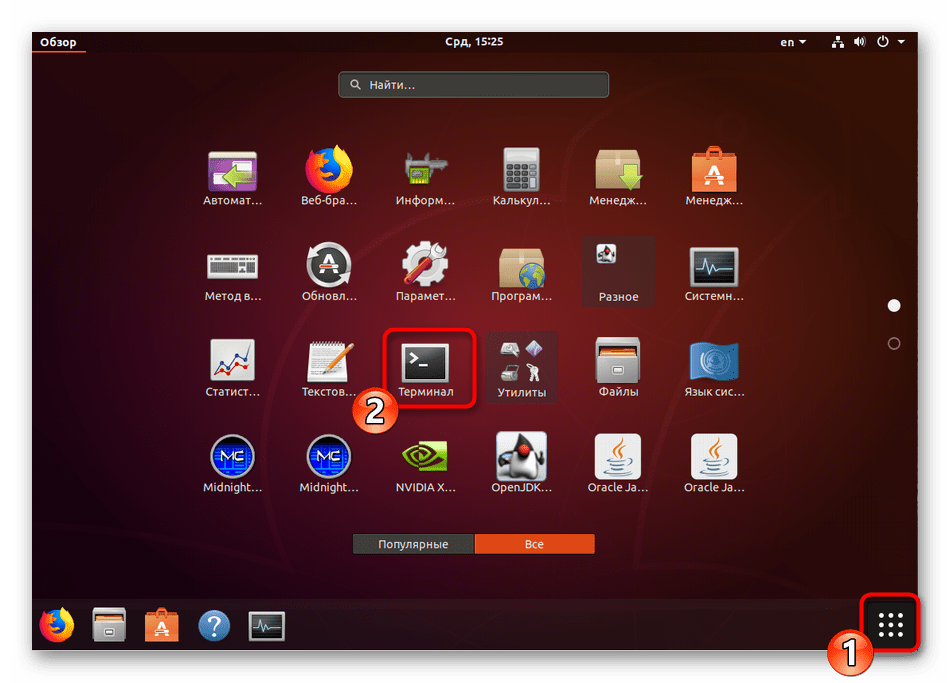 Запустите «Терминал» любым удобным методом, например, зажав горячую клавишу Ctrl + Alt + T или воспользовавшись соответствующим значком в меню.