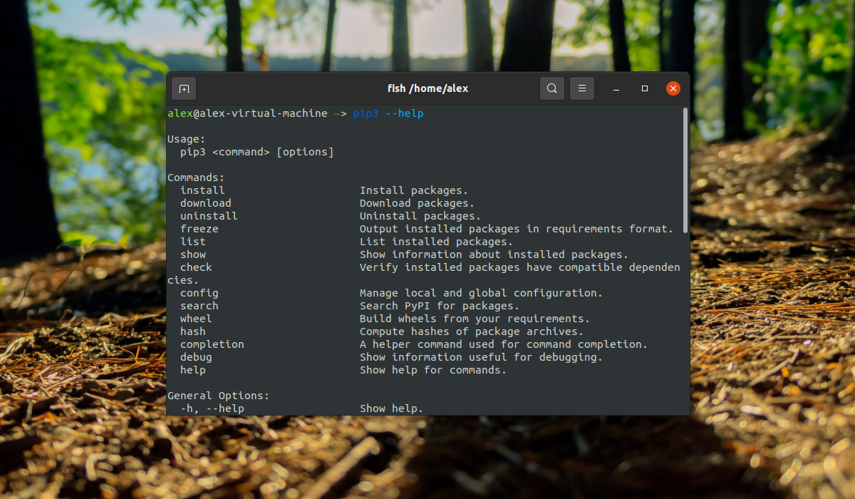 У pip достаточно много разных опций и команд, поэтому здесь все они описаны не будут. Для просмотра всех команд и опций к ним можно вызвать справку при помощи команды