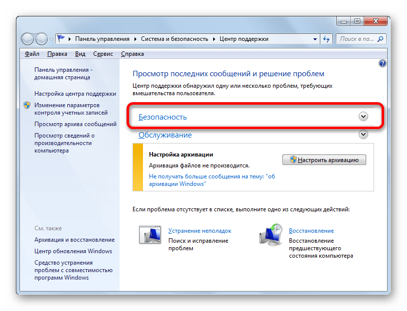 После данного действия автоматическое обновление будет включено, а предупреждение в разделе «Безопасность» в окне Центра поддержки исчезнет.