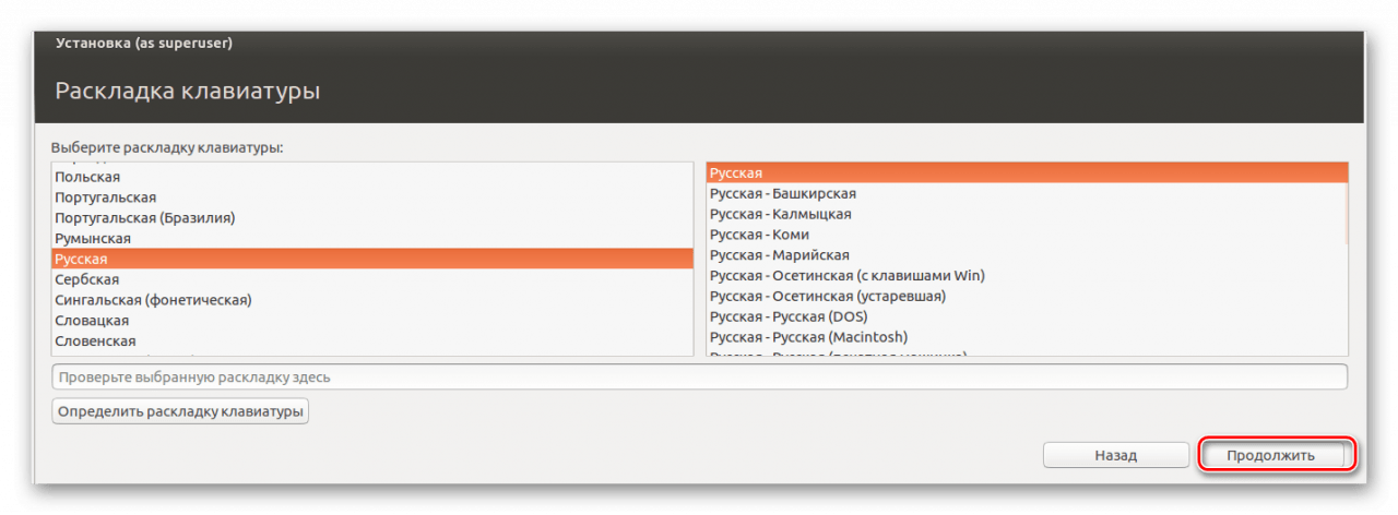 Выберите язык и раскладку клавиатуры. продолжите установку.