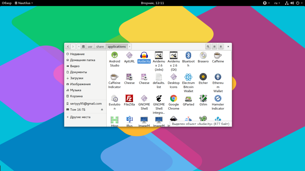 Точно так же работает запуск скриптов в графическом интерфейсе. Вы можете найти все ярлыки из меню в каталоге /usr/share/applications/. Любую программу можно запустить двойным щелчком отсюда. Но давайте посмотрим что находится внутри ярлыка, для этого откройте его в текстовом редакторе: