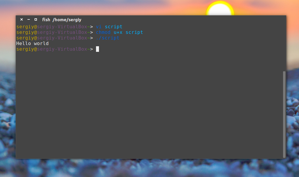 Вторая строка — это действие, которое выполняет скрипт, но нас больше всего интересует первая — это оболочка, с помощью которого его нужно выполнить. Это может быть не только /bin/bash, но и /bin/sh, и даже /usr/bin/python или /usr/bin/php. Также часто встречается ситуация, что путь к исполняемому файлу оболочки получают с помощью утилиты env: /usr/bin/env php и так далее. Чтобы выполнить скрипт в указанной оболочке, нужно установить для него флаг исполняемости:
