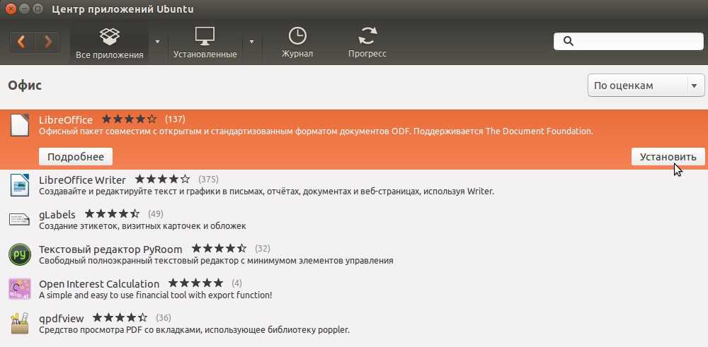 Установить можно и отдельные компоненты — не всем нужен целый пакет, кто-то ограничивается одним текстовым редактором. Для этого в команде нужно добавить к libreoffice через дефис название компонента: