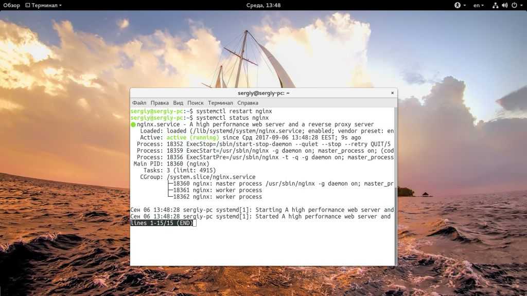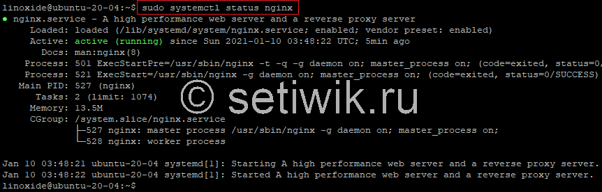 Давайте сделаем быструю проверку, чтобы подтвердить статус сервиса NGINX. Для этого выполните следующую команду: