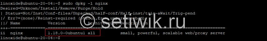 Эти данные показывают, что установлен nginx версии 1.18.0. На момент написания статьи это последняя версия для Ubuntu 20.04.