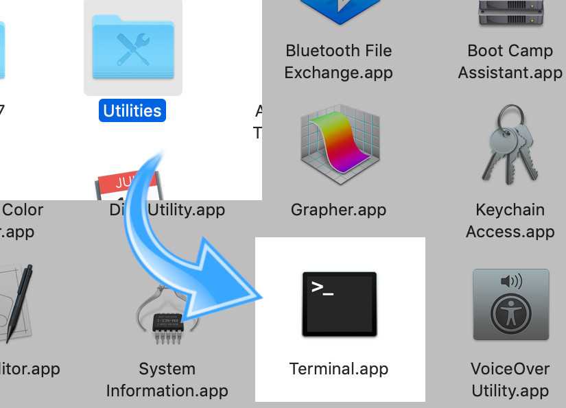 After you’ve removed the PostgreSQL folder, open the Utilities folder in a Finder window, and then open the Terminal application.
