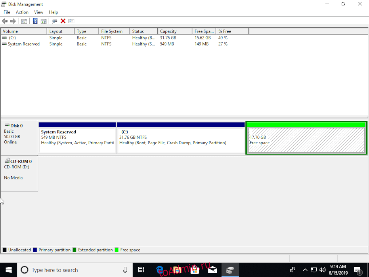 - После этого том освободится, что в дальнейшем позволит использовать пространство для создания записи новой системы.