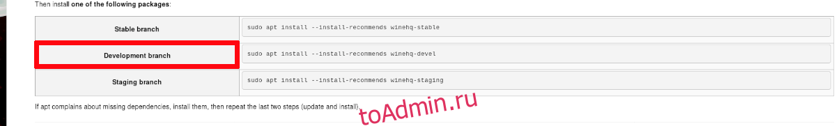 Шаг 4: После процесса обновления вы сможете установить пакеты Wine Development, используя команду apt install ниже.