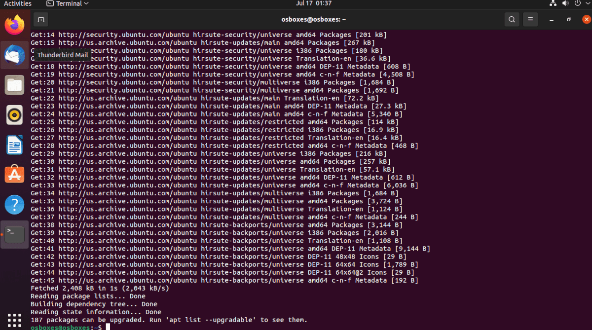 Когда обновление будет завершено, перезагрузите вашу систему. Затем снова откройте окно терминала и используйте автоудаление команда для удаления ненужных пакетов в системе.