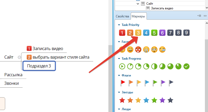 Добавляется маркер простым способом: выделяете необходимую «карточку» и нажимаете на соответствующий маркер, как показано в примере.