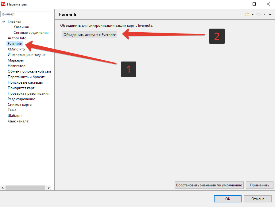 Связь Evernote и Xmind поможет Вам, если надо показать вашу карту кому-либо, а компьютера с программой под рукой нет.