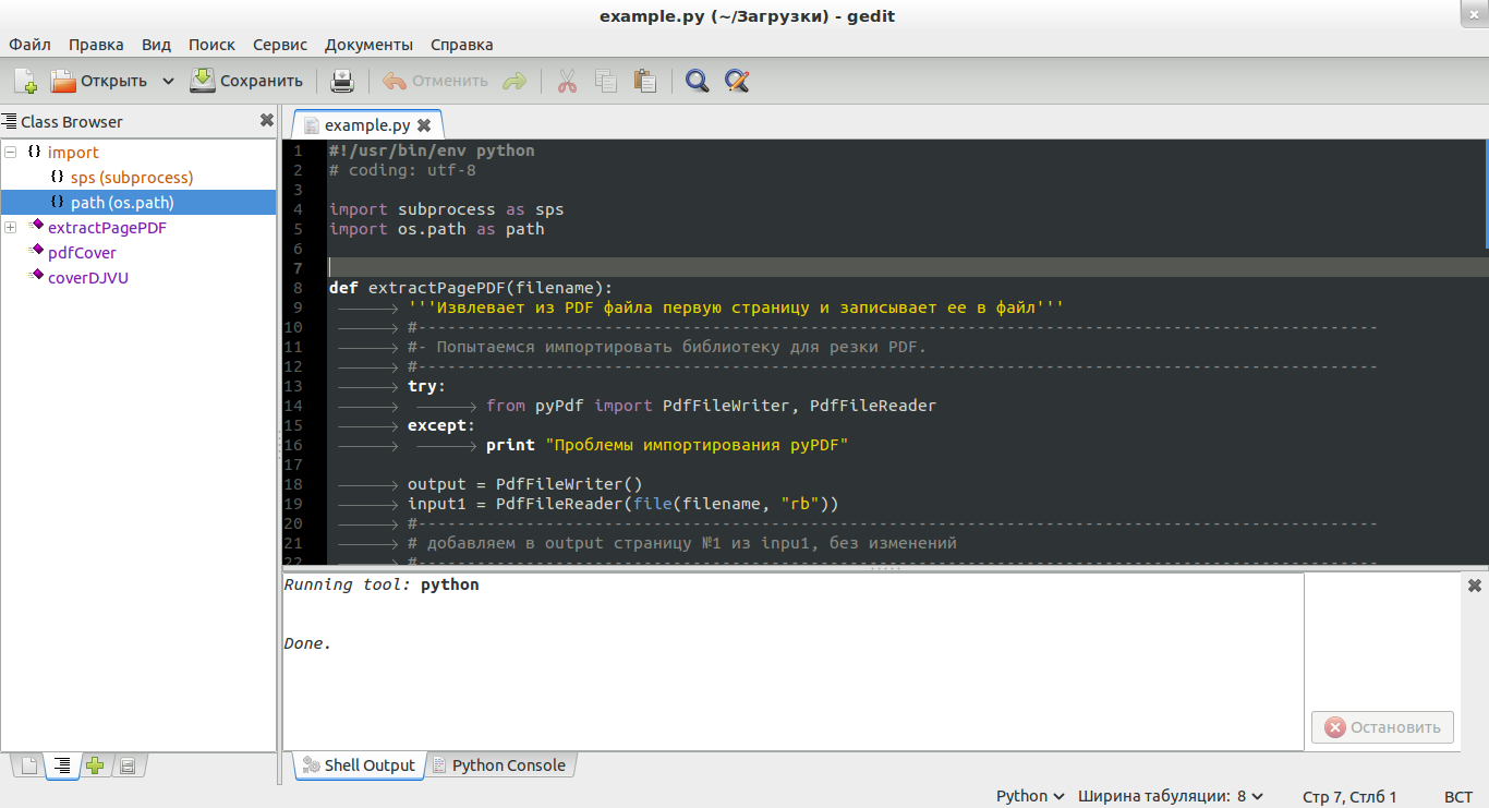 Многим начинающим Python-разработчикам пригодится данная заметка. После всех преобразований ваш gedit превратится в нечто подобное: